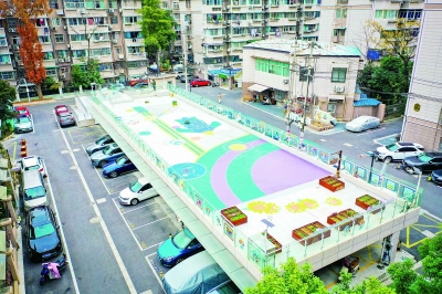 12月23日,建邺区沿河四村将车棚顶平台公共空间改造为小广场。彩绘太阳系、趣味游戏区等元素点缀其中,既盘活了闲置空间、让老小区完成焕新升级,又为居民打造了休闲活动新去处,为日常生活增添了乐趣。
