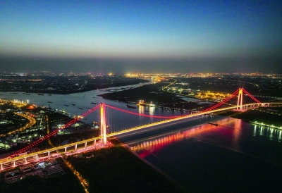 4月23日晚,南京新生圩长江大桥(仙新路过江通道)夜景照明工程基本完工。据介绍,南京新生圩长江大桥是连接南京江南主城区与江北新区的重要交通枢纽,全长约13.17公里,主跨1760米,采用单跨门型双塔悬索桥设计,建成后将成为国内第一、世界第三大跨度悬索桥。大桥主塔高度达263.8米,相当于88层楼高,其外包“N”字形钢结构设计灵感源自南京简称“宁”的拼音首字母。南京新生圩长江大桥计划今年建成通车。